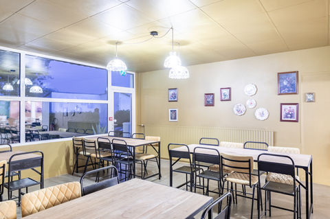 Le restaurant dispose d'une salle privative d'environ 20 personnes et la salle principale peut accueillir une centaine de personnes